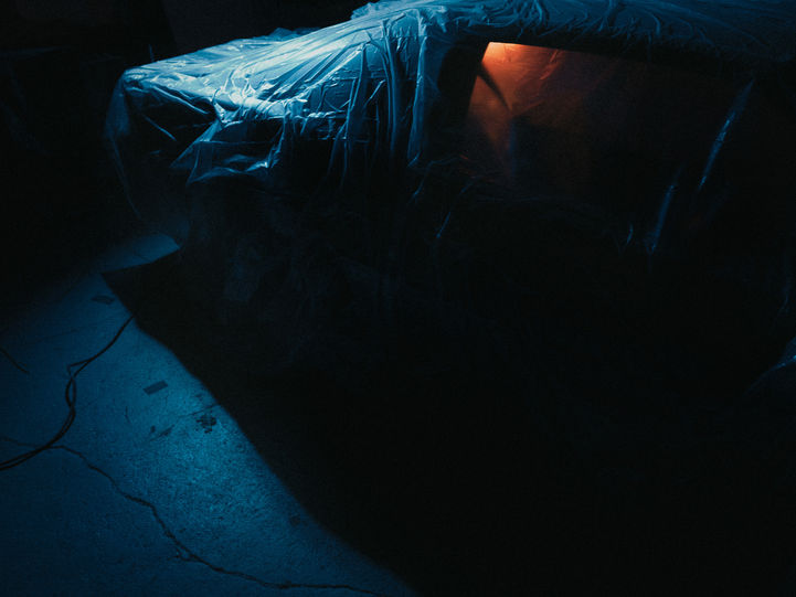 This visual series explores the intersection of human identity and the inner machine. The car, wrapped in translucent plastic, represents both a man's inner nostalgia for retro automotive culture and a cloak that transforms it into an advanced, almost UFO-like object—blurring the line between past and future. Cinematic lighting, layered textures, and a bold color palette create a narrative of mystery and transformation. The imagery evokes a tension between organic presence and mechanical form, with influences drawn from cyberpunk and neo-noir visual language. Designed as a personal spec project, this work demonstrates a creative approach to automotive and lifestyle storytelling.